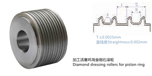 Possiamo produrre rulli di dressing di alta precisione con metodi di galvanizzazione interna (UZ). ad esempio, possiamo fornire rulli multi denti complicati con piccolo raggio R0.1 e la distanza tra denti inferiore a 1 mm e i rulli pesanti di rettifica con altezza superiore a 200 mm e rapporto di diametro altezza superiore a 1.5.